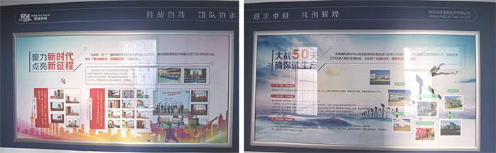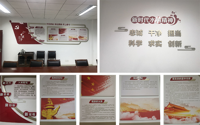 为展示公司企业风采,加强党员活动阵地建设,营造和谐发展文化氛围,近日,公司在虎踞关办公区,结合公司党建工作宣传、企业发展与重大成果展示、职工之家创建等,对公司会议室、楼梯和走廊墙面进行精心策划和重新布置,企业面貌焕然一新。 (围绕“不忘初心,牢记使命”主题,布置入党誓词、党员权利、党员义务、党的宗旨、党支部基本任务和新时代水利精神的党建主题墙。) (公司产品应用和创新成果展示,彰显公司高新技术企业的特点与实力,营造创新驱动、科学发展、开拓进取的工作氛围。) 企业文化橱窗 (企业文化橱窗用于展示公司文化活动动态,现在展示的是公司近期开展的“聚力新时代、点亮新征程”和“大战五十天、确保试生产”主题活动。) |