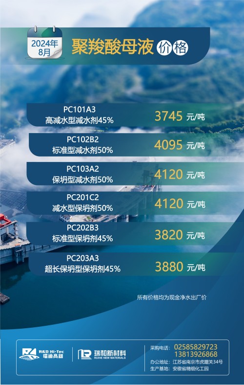 【聚羧酸系减水剂母液月度最新价格】丨2024年8月