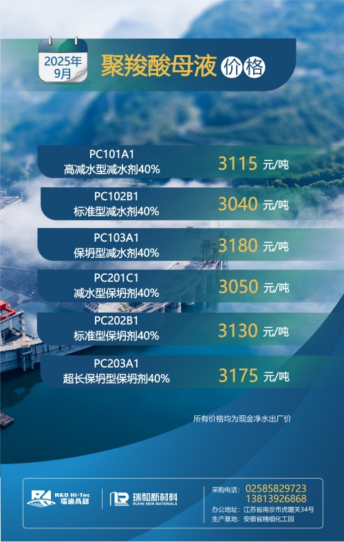 【聚羧酸系减水剂母液月度最新价格】丨2025年9月