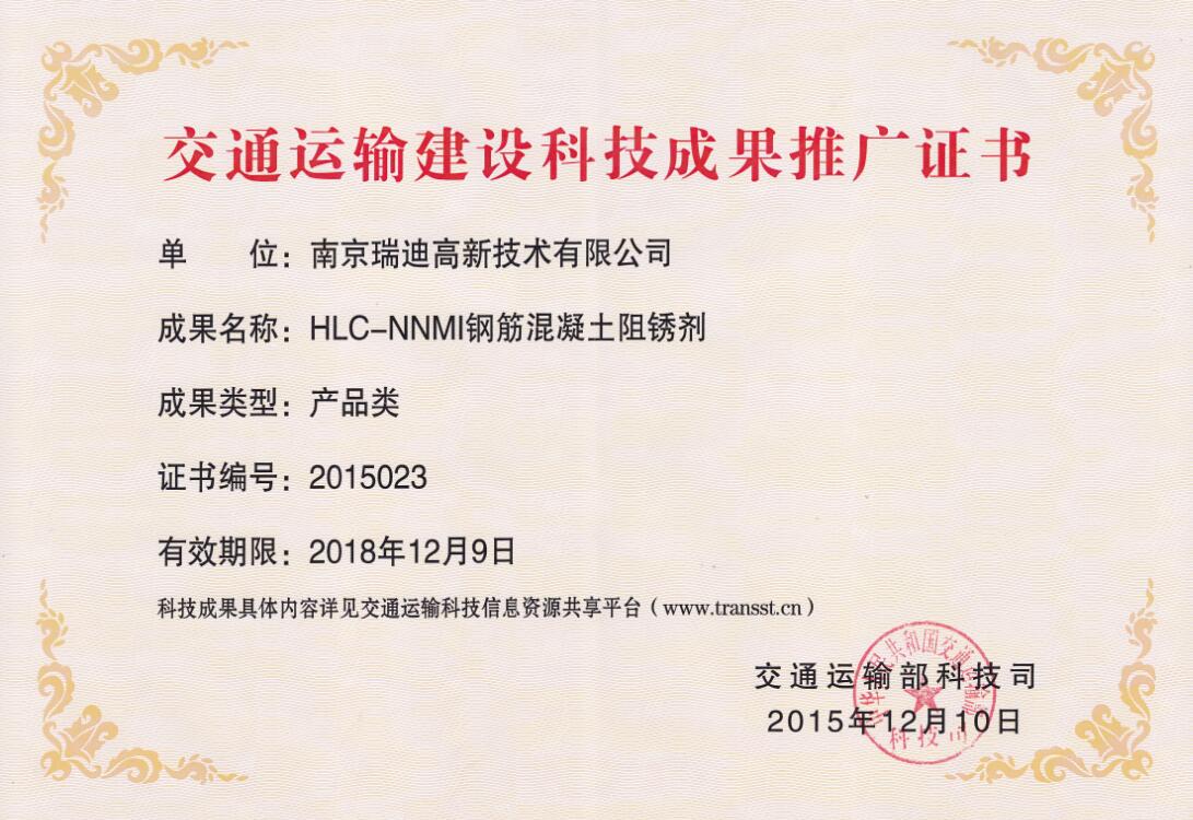 HLC-NNMI 交通运输部科技成果推广证书 |