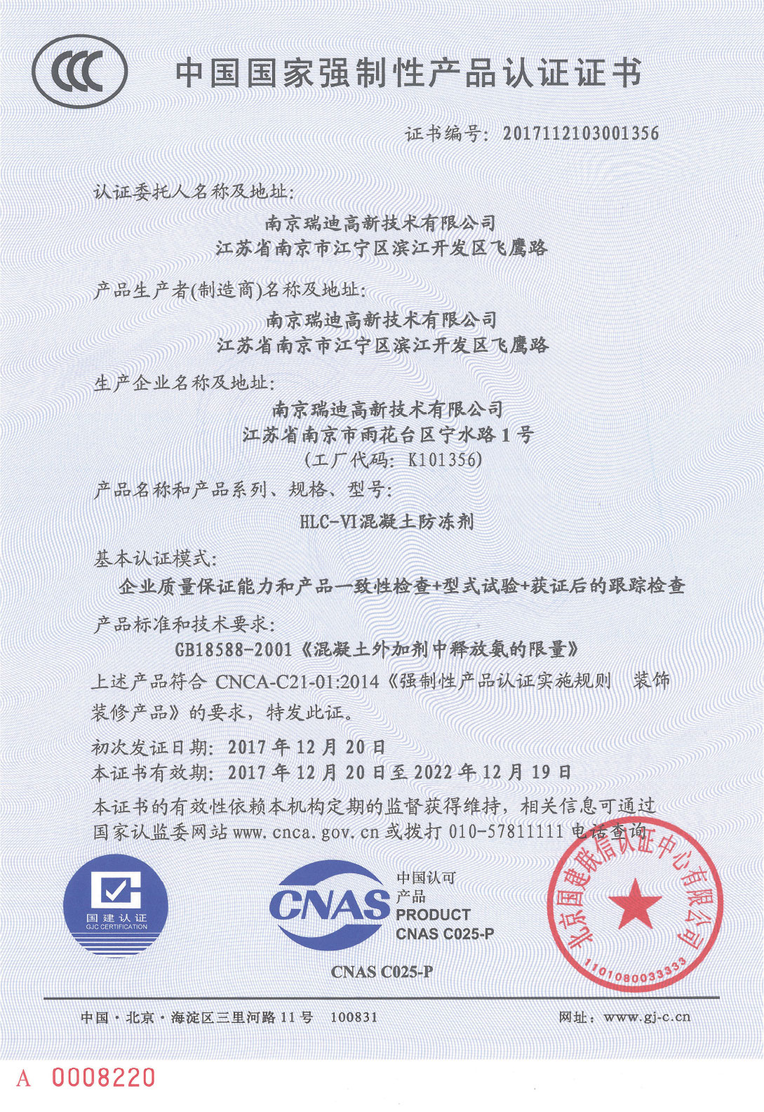 高新技术产品HLC-NAF缓凝高效减水剂 |