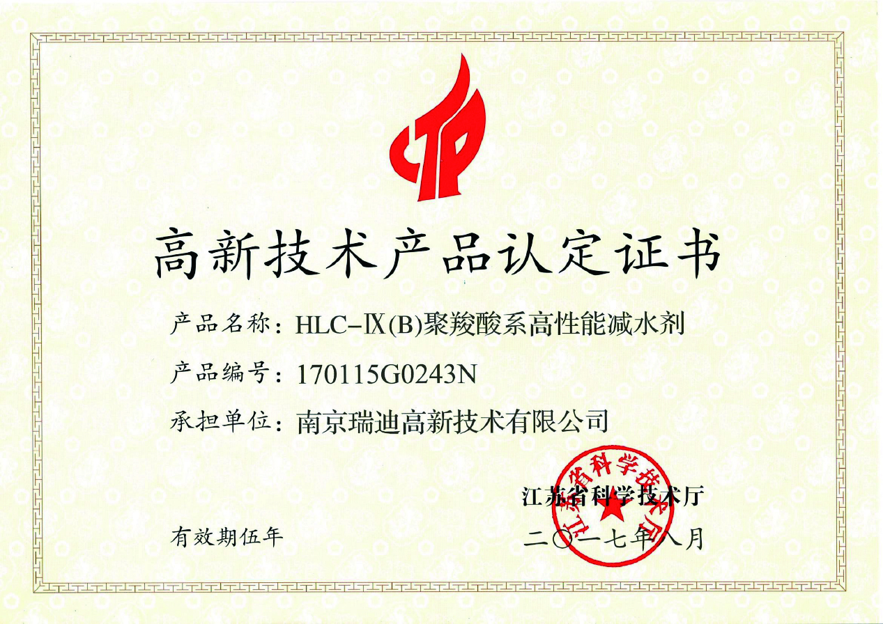 高新技术产品HLC-IX(B)聚羧酸系高性能减水剂 |